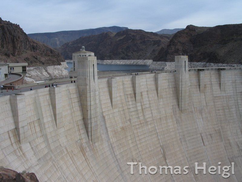 Auf dem Weg von Las Vegas zu unserer nächsten Etappe besuchten wir den Hoover-Staudamm. Hier waren wir bereits 1994 und stellten fest, dass sich viel geändert hat. Wurde man damals fast durch den gesamten Damm geführt und konnte viele technische Einzelheiten direkt ansehen, war die Führung diesmal um einiges kürzer und endete in einem Vortrag über den Damm und die geologischen Verhältnisse. Auch beim Einlass wurde man wie am Flughafen kontrolliert. Der 11. September hat auch hier seine Spuren hinterlassen.